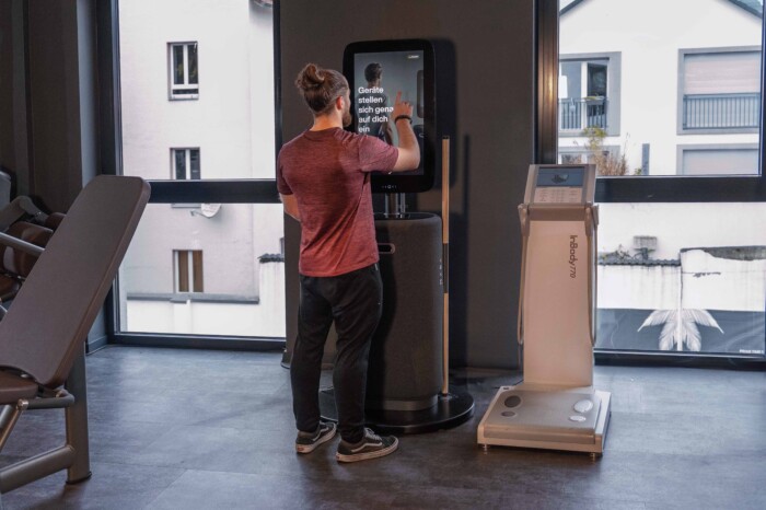 Der EGYM Hub ist ein biometrisches Scan-System, das Trainer und Trainierende näher zusammenbringen soll und besteht aus mehreren Komponenten: Das Gerät scannt zunächst deine Gliedmaße (zum Beispiel Arm- und Beinlänge) ab und übermittelt diese direkt an deine Trainingsgeräte. Die Geräte, an denen du trainierst, können so perfekt auf dich eingestellt werden, ohne ein lästiges Einstellen zu Beginn des Trainings. Du brauchst dir also keine Gedanken darüber zu machen, ob die Sitzhöhe passt oder ob die Lehne vielleicht zu weit nach hinten oder vorne geneigt ist. Auch lästiges Merken bestimmter Einstellungswinkel an Geräten bleiben dir erspart.